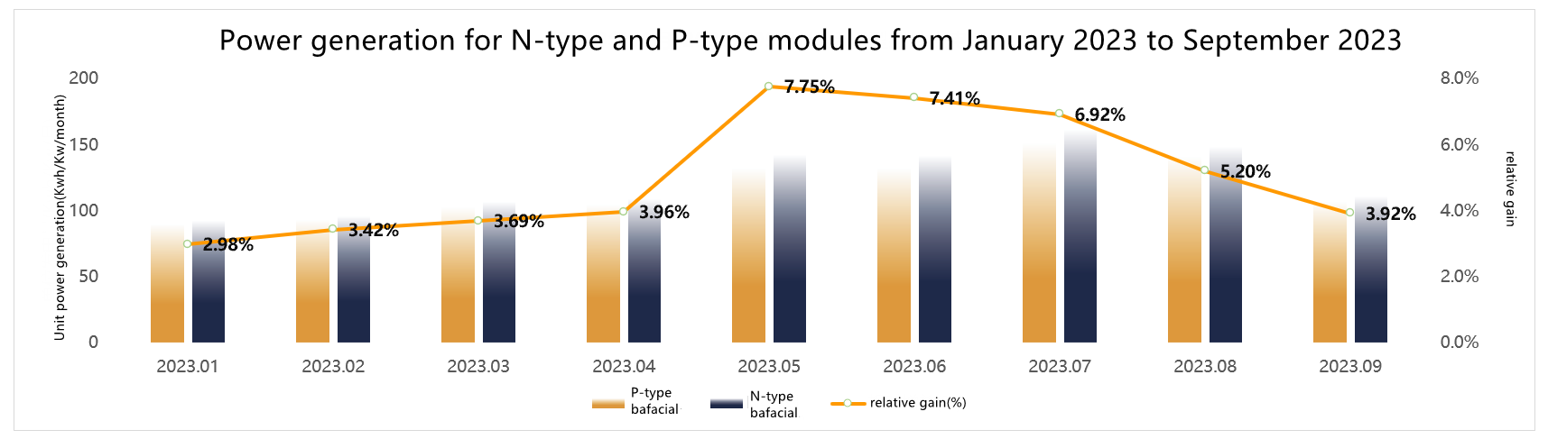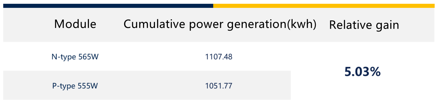 Comparative data of monthly power generation of N-type modules and P-type modules