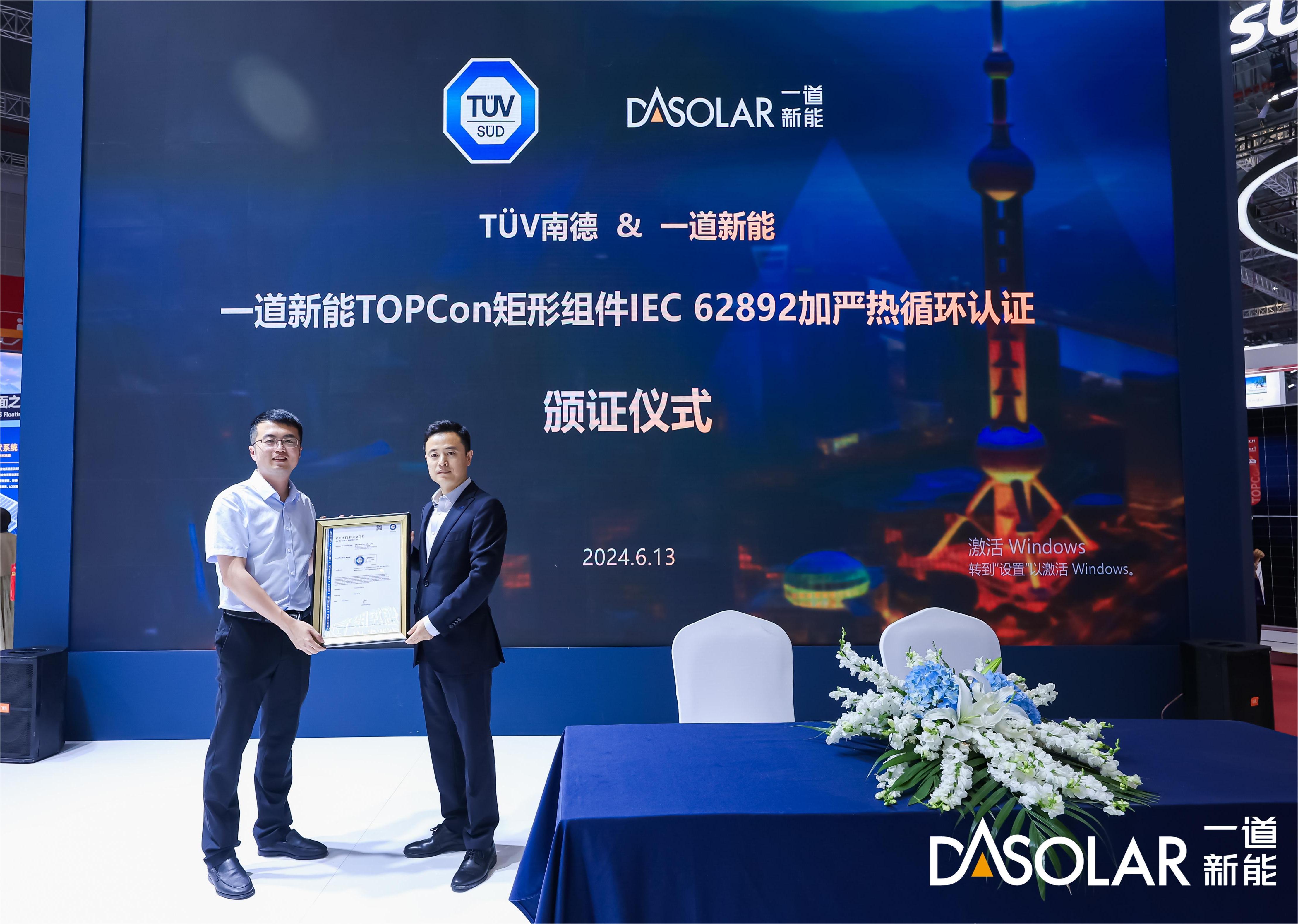 During the SNEC exhibition, in collaboration with TÜV SÜD, TÜV NORD, Kiwa PVEL, China General Certification Center ( referred to as CGC), and UL Solutions, DAS Solar held several certification ceremonies. The N-type rectangular module received the IEC TS 63126 High-Temperature Certification and the IEC 62892 Enhanced Thermal Cycle Certification. The N-type bifacial double glass offshore PV module received the ASTM E1597 Standard Commercial Inspection Test. Moreover, the DAS Solar lightweight half-cell module has been certified to the new IEC standard. In addition, the DAS Solar laboratory and Zhangzhou base laboratory has been accredited by CGC with the "WMT PV Laboratory" qualification for its advanced product testing and control capabilities.