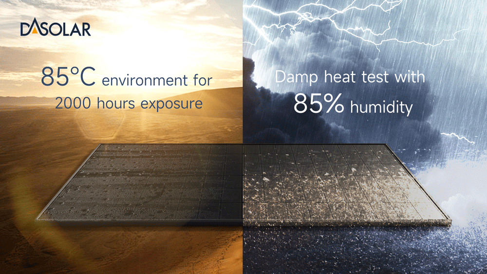 The damp heat resistance of PV modules is susceptible to being impacted by high temperatures and humidity. DAS Solar successfully passed a series of rigorous damp heat tests with its advanced N-type technology and long-lasting, reliable encapsulation techniques, demonstrating exceptional performance in extreme environments.