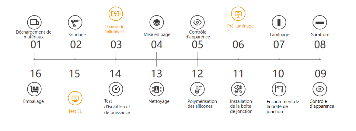 Contrôle complet de la qualité, depuis les matières premières jusqu'aux produits finis. Chaque étape de production est contrôlée en continu, et des inspections régulières sont faites sur site. Les postes de contrôle-clé sont assistés par IA.