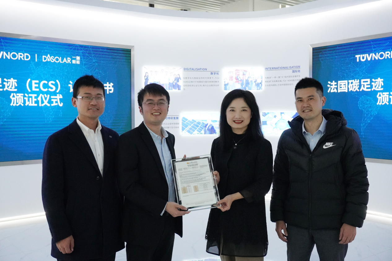 Recently, DAS Solar N-type modules passed the French carbon footprint ECS certification, which enhances low-carbon and globalization.