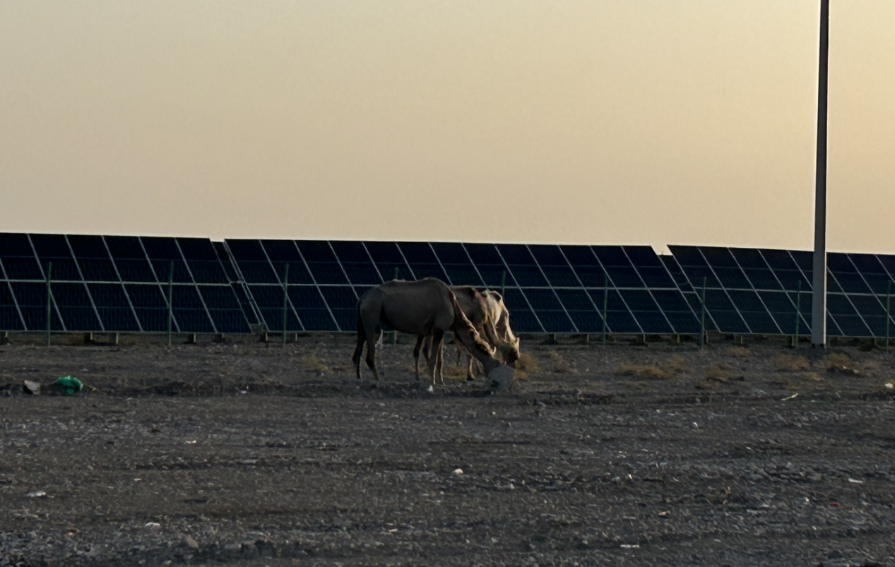 At dawn in the vast Gobi of Aksu, wild Bactrian camels appear through the morning haze. Their long lashes glisten with dew, and their sturdy humps signal health and vitality. Though relaxed in their movements, they remain watchful of human. Nearby, rows of PV modules awaken in the soft light, almost as if drawing breath. The camels wander past the array, eventually disappearing into the horizon. For them, the arrays may appear as a mysterious blue sea, one that provides shelter and thriving grasses beneath. This seemingly simple scene captures a deeper truth, which is a living example of harmony between solar technology and the natural world.
