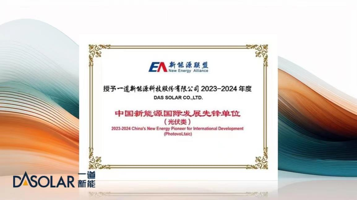 国际进程|一道新能获颁“2023-2024年度中国新能源国际发展先锋单位”奖