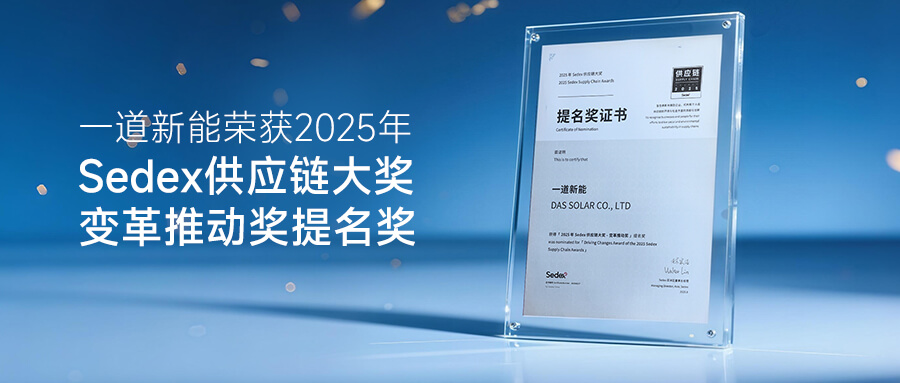 国内聚焦|一道新能荣获2025年 Sedex供应链大奖-变革推动奖提名奖