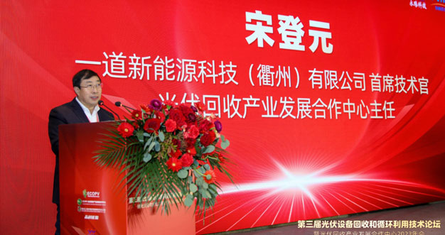 2023年2月10日,第三届光伏设备回收和循环利用技术论坛暨光伏回收产业发展合作中心(以下简称“光伏回收中心”)2023年会在浙江嘉兴隆重召开。基于一道新能在推进光伏组件全生命周期绿色发展领域的突出贡献,经光伏回收中心董事会推荐及表决,一道新能全票当选该中心副董事长单位,一道新能首席技术官宋登元博士连任光伏回收中心主任。
