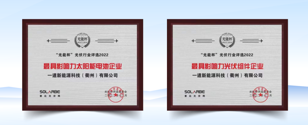 作为业内最早布局N型技术的光伏企业之一,一道新能从成立之初就坚定选择了N型路线,历经淬炼,勇毅前行,以领先的技术优势,在光伏浮沉期突出重围。短短4年多的时间内,公司展现了高效的“一道速度”,持续深耕,追求极致,破茧成蝶,从孤勇者到启明星,持续引领着光伏行业创新技术的发展迭代。此次荣获“最具影响力太阳能电池企业”、“最具影响力光伏组件企业”、“光伏行业评选2022年度产品”三项大奖是对一道新能综合竞争力的又一次认可。