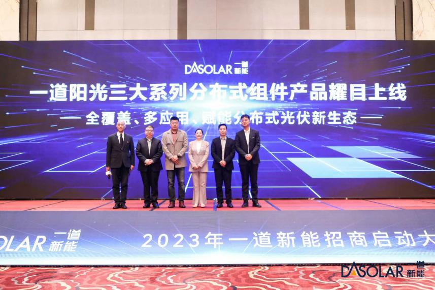 在招商大会现场,山东省太阳能行业协会常务副会长张晓斌,河北省光伏新能源商会秘书长马献立,河南省产业发展研究会副会长、新能源专委会秘书长姚峰,一道新能高级营销副总裁黄卫红、中国区销售总经理刘付炯、分布式销售总监鞠航共同为一道阳光三大系列分布式组件产品揭幕。针对城市光伏分布式屋顶特性,一道新能量身打造推出了三大系列“优加”分布式产品推荐,分别为DAON 72片单、双玻组件以及轻质组件,满足客户多样化需求。