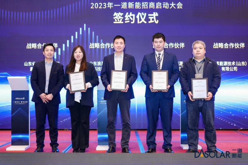 一道新能分布式销售总监鞠航从导入流程、等级体系、资质要求等方面详细解读了经销商制度,他表示公司在经销商推广政策上给予了多重红利,根据经销商资质、等级给予不同的授权,享受相应优质权益,并将通过培训及客户资源管理全面赋能经销商。在随后进行的战略合作伙伴、经销商签约仪式上,现场气氛十分火爆。未来,一道新能会携手合作伙伴,助力中国分布式光伏的新发展。