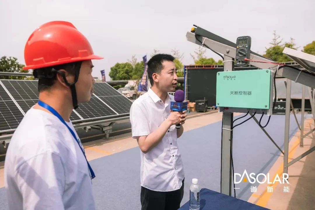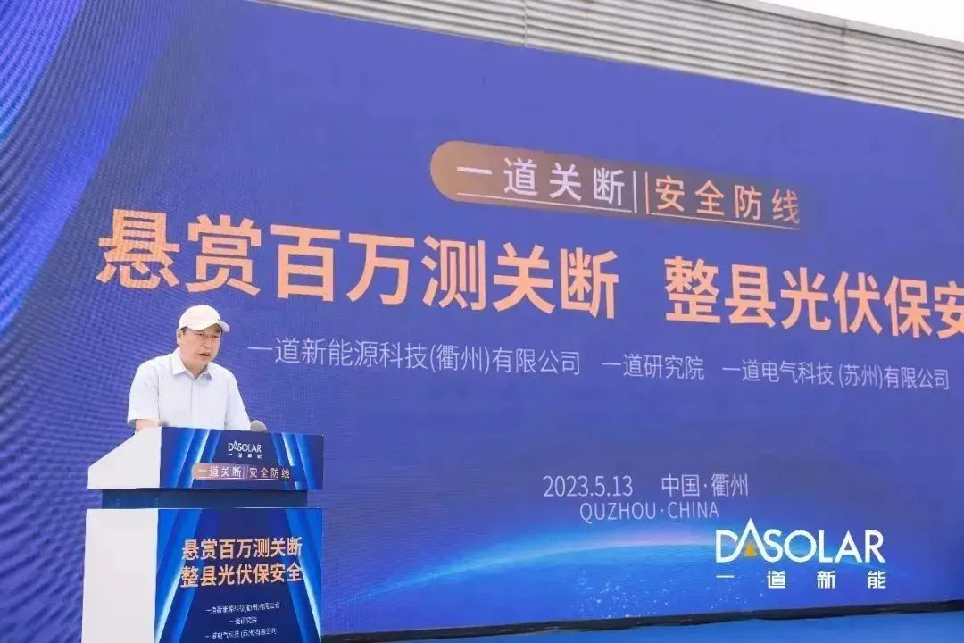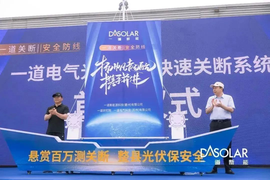 目前,市场常见的快速关断技术均为欧美公司垄断。为了打破国际垄断、降低建设成本,一道新能投资设立“一道电气科技(苏州)有限公司”,并展开技术研究和产品开发,推出了完全自主知识产权的快速关断系统。5月13日,一道新能、一道研究院、一道电气联合举办的《悬赏百万测关断,整县光伏保安全》大型推介活动在浙江省衢州市一道新能总部举行。