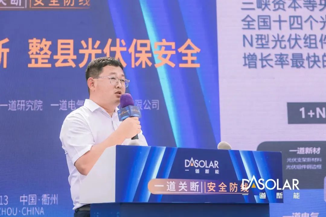 一道新能董事长、总裁刘勇在致辞中表示,今天的活动是对一道电气主创团队多年来幕后工作的集中展示和公开检阅。快速关断系统作为首批产品,计划于今年下半年推向市场,全国生产基地、全球营销网络也正在筹划中。未来,一道电气所有产品和服务将面向国内城市光伏、整县光伏、户用光伏市场,辐射欧美日澳分布式光伏市场,成为一道新能重要的产业链生态圈企业。