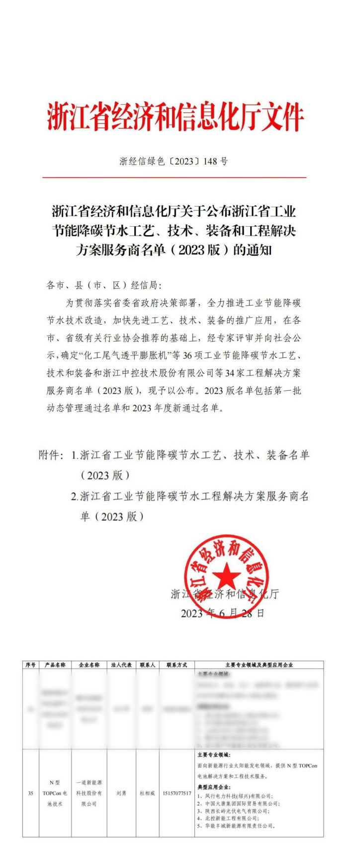 近日,由省经信厅征集、评审的“工业节能降碳工艺、技术、装备和工程解决方案服务商”名单,在各市、有关行业协会推荐的基础上,经专家评审,公布了36项工业节能降碳工艺、技术、装备和34家工程解决方案服务商。凭借新能源行业持续的技术创新和产业引领优势,一道新能赫然在列。