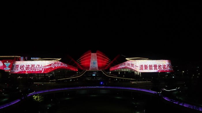 千屏齐点亮,满城一日庆。7月27日晚,衢州市隆重举行“企业亮灯日”活动启动仪式。随着 启动杆的落下,“热烈祝贺一道新能营收破百亿——中共衢州市委、衢州市人民政府!”字幕在市文化艺术中心和便民服务中心、行政中心以及衢州高铁站、飞机场、高速路口及各县(市、区)所有公共视屏和公共灯光资源屏幕一齐点亮,260万衢州人民共同为一道新能源科技股份有限公司助力喝彩,以一座最有礼的城市名义致敬企业,传递民营经济发展信心。