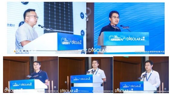 主旨报告环节,一道新能组件研发总监介雷先生分别从紫外线影响、形变影响、水汽影响等角度及相应解决方案介绍了一道新能N型轻质组件的优势所在;北京北方华创微电子装备有限公司市场管理部总监孙朋涛先生分别从技术进展、降本进展及提效进展三个方面介绍了公司在N型TOPCon电池设备与工艺上的发展突破;CTC中国国检测试控股集团股份有限公司光伏检验认证院院长王冬先生分别从光伏产业发展现状、碳排放现状及国际贸易壁垒三个方面阐述绿色供应链发展的必要性,并结合已有工作基础介绍当下绿色供应链发展现状;常州聚和新材料股份有限公司副总经理敖毅伟先生从光伏市场与金属化发展趋势及聚和高效银浆产品解决方案两个方面解读了N型TOPCon电池浆料技术进展与挑战;浙江中聚材料有限公司技术总监石洪涛先生在报告中提到,随着技术的迭代,N型电池对胶膜也提出了更高要求,随后从耐湿热性能及胶面粘结方式等维度介绍公司在先进高分子膜封装技术方面的进展。
