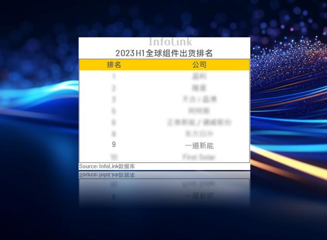 近日,InfoLink公布2023上半年度全球组件出货排名,作为N型技术的引领者,一道新能以优异的出货数据稳居第九位。