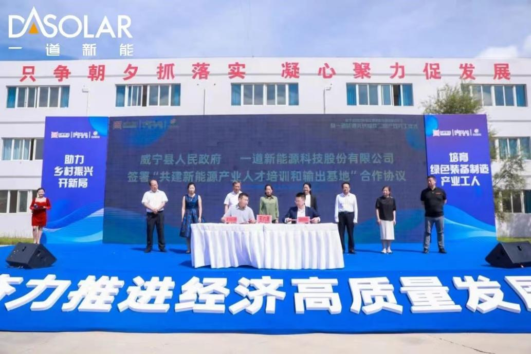 除了引才,一道长通新能源还配合当地政府展开政企协作,注重当地人才队伍的培养与输出。今年8月,在一道长通光伏组件二期生产线开工仪式上,威宁县人民政府与一道新能源科技股份有限公司签署“新能源产业人才培训和输出基地”合作协议,计划将威宁打造成新能源产业人才培训输出基地。此举将有效推动当地人才资源的的培养输出,助力当地从“人口大县”向“人力资源大县”转变。