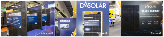 本次展会一道新能展出了DAON 640W双面双玻组件,DAON全黑440W双面双玻组件等产品,其中全黑组件以优雅的外观惊艳登场,在展台现场掀起了一阵酷黑热潮,该组件采用新型镀膜技术和无色镀膜玻璃,使光线能更好地进入组件,从而增加组件发电量;黑电池、黑边框、黑背板带来极致美观的视觉感受,在产生绿色高效电力的同时彰显个性化选择需求,完美展现了功能性和美观性的有机融合。