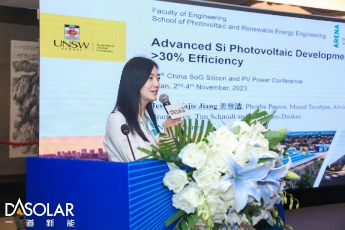 今年5月一道新能联合“太阳电池之父”马丁格林团队启动了研发高效超40%效率新型太阳电池项目,联合研发团队研究员、澳大利亚新南威尔士大学光伏研究中心姜雅洁博士,发表了《向着大于30%效率先进硅光伏技术发展(Advanced Si Photovoltaic development towards >30% Efficienv)》的报告。介绍了依托高效N型硅电池结构,在电池表面叠加具有单重态裂变特性的新型光电转换薄膜材料,构成了一个激子倍增生成过程,从而实现电池高的开路电压和短路电流,使太阳电池效率大幅提升到35%以上的基础研究工作的进展。
