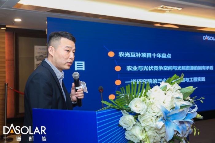 一道研究院冯中根先生发表题为《生态光伏-沙戈荒大基地光伏不能穿新鞋、走老路》的报告分享,他盘点了农光互补项目存在的固有矛盾,一道研究院创新提出生态光伏思想,农业规划先行,系统工程方法三大解题思路。落实生态在前,针对板下农作物、动物或者其他的一些土地情况,要能长东西、种东西、养东西,要有土壤利用和治理的要求。农业规划先行,保证农作物生长在光饱和点的光照的水平上。先研究农业品种特性,再规划光伏系统空间布局参数,最后再测算光伏与农业部分的综合投资收益率。