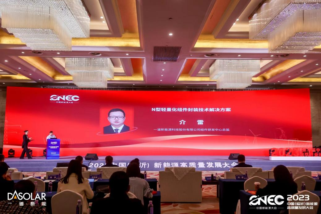 11月7日-8日,2023中国新能源高质量发展大会同期第八届中国光伏产业论坛暨2023好光伏品牌盛典在山东临沂隆重举行。一道新能组件研发中心总监介雷先生受邀出席,发表题为《N 型轻量化组件封装技术解决方案》的主题演讲。凭借在N型技术的创新研发及高效光伏产品的卓越表现,一道新能蝉联“2023好光伏年度电池/组件十大品牌”奖项。