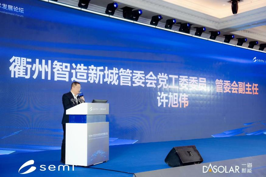 衢州智造新城管委会党工委委员、管委会副主任许旭伟先生在致辞中表示,南孔圣地衢州有礼,欢迎全国光伏产业的嘉宾来到衢州,共同探讨光伏行业的创新发展之路。他指出,光伏作为可再生能源的主力军,绘制着人类绿色低碳生活的美好蓝图,未来衢州智造新城将会发挥产业链集群效应,助推光伏行业提质增效,与光伏产业一道成长一道进步。
