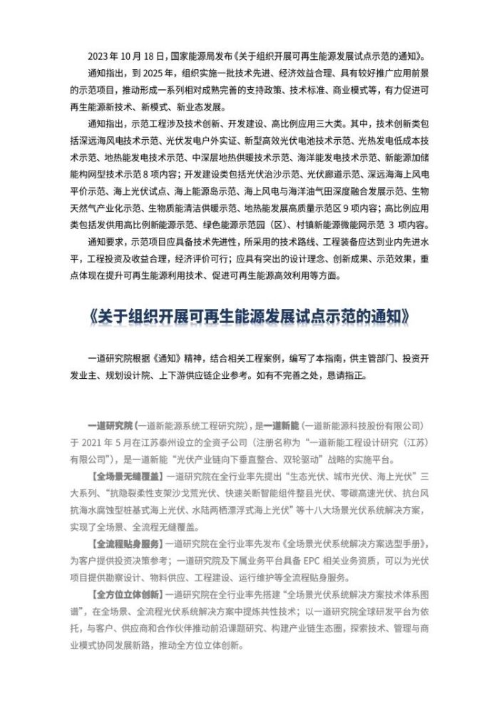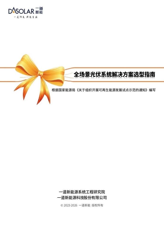一道研究院结合相关工程案例,编写了《全场景光伏系统解决方案选型指南》,供主管部门、投资开发业主、规划设计院、上下游供应链企业参考。