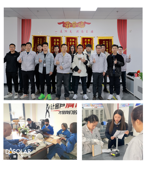 一道新能从成立之初就秉承“高标准、严要求”的核心理念建立了完善的质量管控体系,树立起全员质量意识,以质量为中心,全方位保障产品出货质量。公司依托卓越的质量管控体系,贯彻全面的供应质量管控及来料检验流程,采用严苛的产线制程控制,通过精准的测试仪器校准,加严可靠性测试,严谨把关出货质量,迅捷响应客户需求,全生命周期践行全过程质量管控的要求,确保了质量工作有序开展。在组件生产过程中,运用三次100%组件全外观检验,三次100%全EL检验,并对所有组件进行耐压、绝缘和接地100%全检验,确保每一块组件的优异品质。