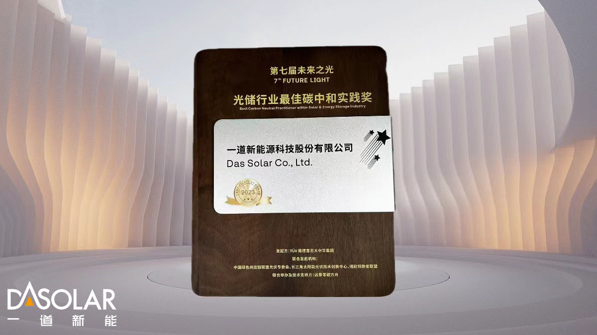 2024年1月24日,由TÜV南德与中国计量院主办的“第七届未来之光TÜV南德与中国计量院光储峰会暨行业交流会”在江苏常州盛大召开。本次峰会以“零碳服务光伏,光伏助力零碳”为主题,是光储行业的一次盛会,吸引了全球范围内知名专家、学者和企业代表参加。一道新能CTO宋登元博士受邀出席本次大会,并参加“绿色光伏 中和先锋”圆桌会对话。在同期举行的颁奖盛典上,一道新能凭借独特的技术创新和卓越的环保实践脱颖而出,荣获“光储行业最佳碳中和实践奖“,充分展现了一道新能对碳中和和可持续发展事业的高度关注和积极行动。
