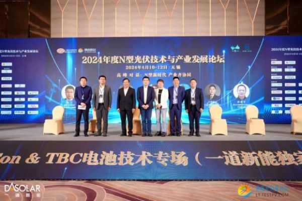 2024年4月11日,由上海市太阳能学会和光伏领跑者创新论坛主办的“2024 年度 N 型光伏技术与产业发展论坛”在江苏无锡隆重举行,一道新能独家冠名“TOPCon & TBC 电池技术专场”。一道新能首席技术官宋登元博士受邀出席作开场致辞,并作《一道新能效率26.55% TOPCon 4.0 puls 技术创新与产业化进程》的主旨报告,同时参加了高峰对话,与业内专家共同探讨N型技术迭代与产业链一体化趋势的发展。凭借领航的N型技术,一道新能在8个月内连续3次创造大面积TOPCon电池的开路电压与转换效率的世界纪录,量产TOPCon 4.0 plus高效电池效率突破26.55%,推动了TOPCon电池量产效率达到的新高度。