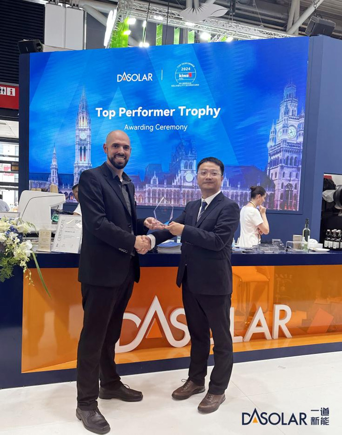 日前,全球权威的独立测试实验室Kiwa PV Evolution Labs(简称Kiwa PVEL)公布了2024年光伏组件可靠性计分卡报告,凭借在N型技术领域的创新引领及卓越可靠的产品性能,一道新能DAON高效双玻组件位列Kiwa PVEL 2024年度光伏组件可靠性记分卡榜单,并荣获“PQP Top Performer最佳表现”称号。在2024 Intersolar Europe展会期间,Kiwa PVEL销售和市场营销副总裁Tristan Erion-Lorico亲临一道新能展台,为其颁发证书。