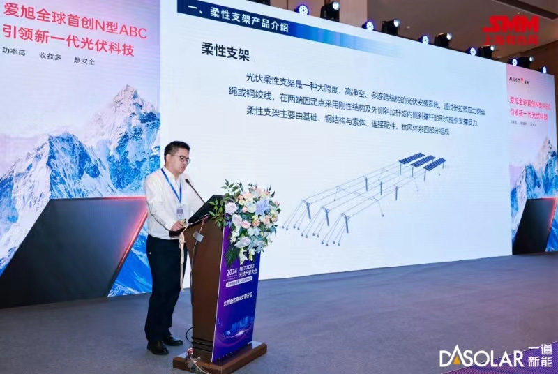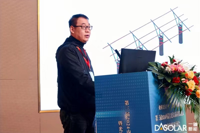 近日,一道新能应用技术部总经理何春涛先生受邀参加2024内蒙古光伏高质量发展论坛暨光伏治沙技术交流会,会上作《沙戈荒柔性光伏支架系统解决方案》专题报告,一道新能应用技术部产品总监潘浙锋先生受邀参加2024 NET ZERO光伏产业大会,会上作《柔性支架多场景应用助力光伏发展》演讲分享,全方位解析了一道新能柔性支架的核心优势,并结合诸多已实施项目案例展示了产品的优越性能,受到了现场参会业内人士的广泛关注。