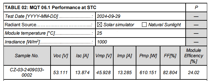近日,一道新能DAON 4.0组件实现跨越式新突破,搭载TOPCon 4.0 Plus电池的高效光伏组件经过全球权威第三方认证机构TÜV 南德测试认证,组件最高输出功率达到610.15W,全面积组件转换效率达到24.02%,标志着一道新能在N型TOPCon高效电池和组件技术路线上实现了跨越式新突破。