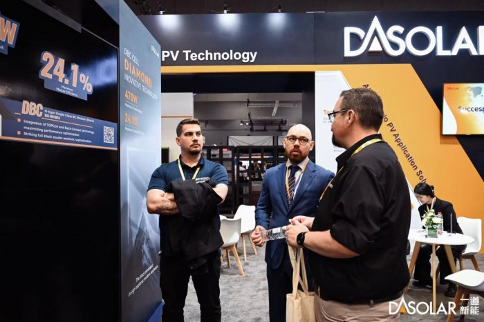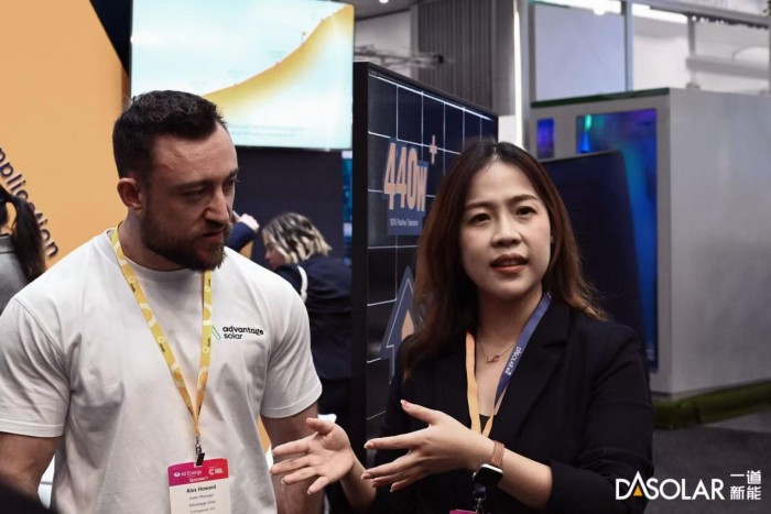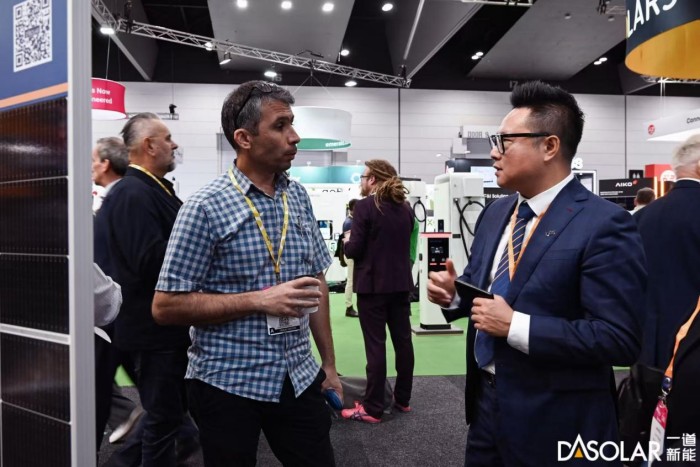 作为人均光伏装机量最高的国家之一,澳大利亚光伏市场开发较早且相对成熟,近年来,一道新能领先性高功率产品、差异化应用产品等在澳大利亚市场收获了良好的客户口碑。此次展会,一道新能展出了黑组件系列440W DAON 4.0双面双玻组件,625W高效双面双玻组件,470W DBC组件,475W轻质带框组件等产品,其中黑组件产品以深邃优雅的夺目外观和硬核卓越的产品性能吸引了众多参展者驻足停留。黑组件系列产品采用革新性镀膜技术和无色镀膜玻璃,光线能更好地被吸收进入组件,提升组件发电量;黑电池、黑边框、透明背板等多样化客制选配,带来极致典雅的外观体验,创新性版型设计,在运输、搬运、安装等方面体现高效便捷的优势,让分布式项目兼收功能性和美观性。