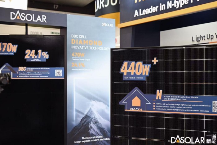光伏行业的发展离不开创新技术的进步和迭代,作为N型技术的引领者,一道新能在N型TOPCon领域深耕不辍,目前TOPCon 4.0 Plus电池量产平均效率突破26.7%,开路电压高达742mV,组件最高输出功率达到610.15W,全面积组件转换效率达到24.02%,多次打破大面积TOPCon电池效率的世界纪录。同时公司在创新型技术研发方面持续探索,此次展会上亮相的DBC组件,以N型技术为基础,采用了背接触N型BC电池,正面无栅线,能有效避免正面栅线对光的遮挡,提升电池的转换效率,具有更低的温度系数,在组件功率和转换效率上也有大幅提升,优雅融入建筑外观的同时能广泛适用于分布式项目。