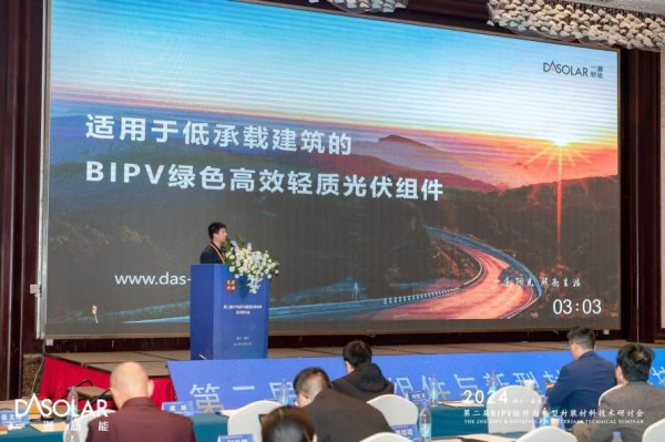 在主旨报告环节,一道新能产品开发经理刘培培先生表示,作为国内领先的轻质光伏组件供应商,一道新能推出的工商业屋顶BIPV系统解决方案,采用创新设计将轻质光伏产品集成到建筑材料中,如屋顶、墙面等,完美贴合建筑外观的同时提供高效、稳定的发电能力,兼具能源供应与建筑美学功能。