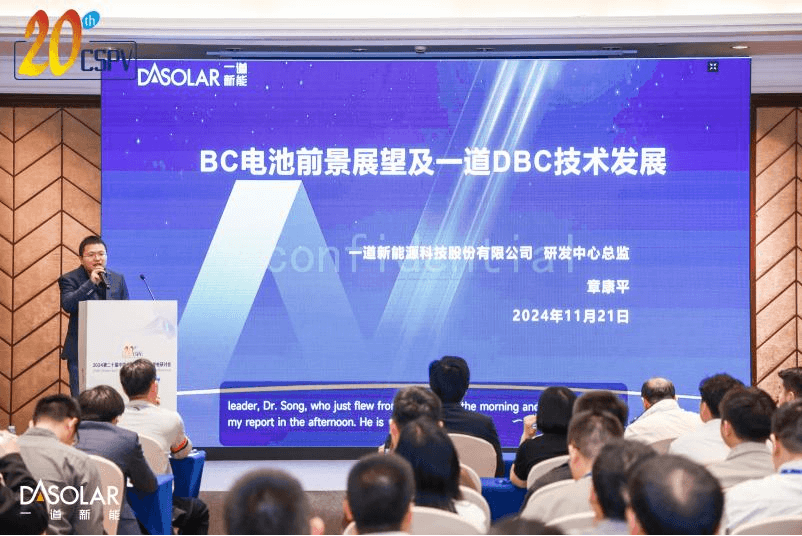 2024年11月21-23日,第二十届中国太阳级硅及光伏发电研讨会(20th CSPV)在深圳隆重召开。CSPV作为光伏行业备受瞩目的年度盛会,包括了2场主题论坛、20个专题分论坛,以及上百场专业报告,紧扣光伏前沿技术和最新应用,共同探讨光伏产业新技术新发展动态,发布研究成果,分享技术创新趋势及未来市场走向。来自光伏企业、高校院所、测试机构、金融机构等专家学者等1000余名代表参加了大会。一道新能CTO宋登元博士、研发中心总监章康平先生、组件研发总监戴建方先生受邀出席并作专题报告,围绕N型TOPCon平台技术,集中发布了多项最新研究成果,同时给出了28%效率的提效技术路径和实现方案。
