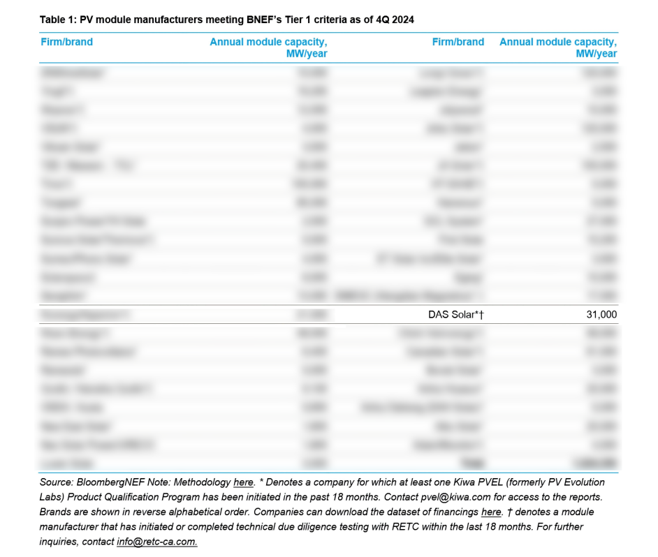 近日,彭博新能源财经(Bloomberg New Energy Finance,简称BNEF)发布了2024年度第四季度全球光伏组件制造供应商名单。一道新能凭借领先的技术实力、优质可靠的产品质量及不断攀升的品牌影响力,再次从全球上百家光伏企业中脱颖而出,荣耀登榜,充分彰显其在国际市场的强劲竞争力与全球客户的深切信赖。