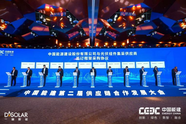 会议同期,一道新能与中国能建签署了2024年度光伏组件集中采购框架协议,标志着双方在新能源领域的合作迈入了一个新的里程碑。