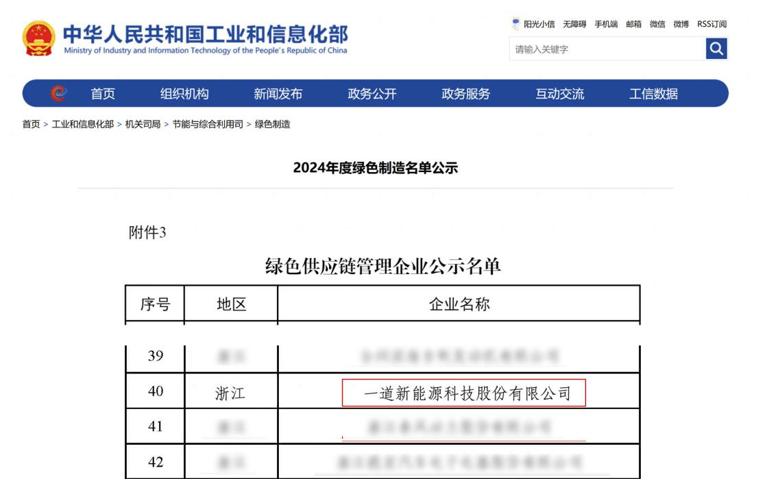 近日,国家工业和信息化部公示了“2024年度绿色制造名单”,凭借领先的绿色智能制造水平和完善的绿色供应链管理体系,一道新能蝉联入选工信部“绿色供应链管理企业”名录。