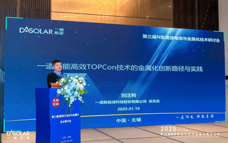 为进一步降低N型电池金属化成本、提高电池效率,推动光伏行业的可持续发展,2025年1月10日,由光伏行研、常州市光伏行业协会联合主办的第三届N型高效电池与金属化技术大会在江苏·无锡举办。本届大会聚焦N型高效电池与金属化产业链关注的关键技术、供应链、未来趋势等热点话题展开深入探讨。一道新能研发中心高级经理刘汪利先生受邀出席发表主旨演讲,向与会来宾分享了一道新能高效TOPCon技术的金属化创新路径与实践。