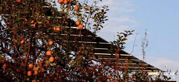 一道新能柔性光伏支架系统依托大跨度、高净空等优势,在不改变原有农业土地用途的前提下,为土地赋予更多绿电产出。在陕西省宜川县的黄土高原丘陵土石山区,一道新能助力建设的华电宜川农光互补项目持续输送绿色电能。项目采用大跨距柔性光伏支架系统,跨度33米、组件离地高度5.5米,灵活架设于苹果树之间。通过科学优化布局和反光膜铺设,使得苹果采光率超过70%,既保障果实品质,又稳定提升产量,成功打造“光伏+苹果”双丰收典范。