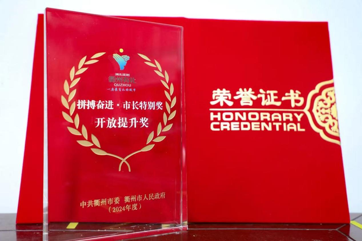 新年初始,开门迎喜。2月5日,衢州市委召开“工业强市、产业兴市”打造高质量发展建设共同富裕示范区市域样板推进会,现场表彰了2024年度市长特别奖。一道新能凭借其在国际贸易中的突出表现,荣获“开放提升奖”。