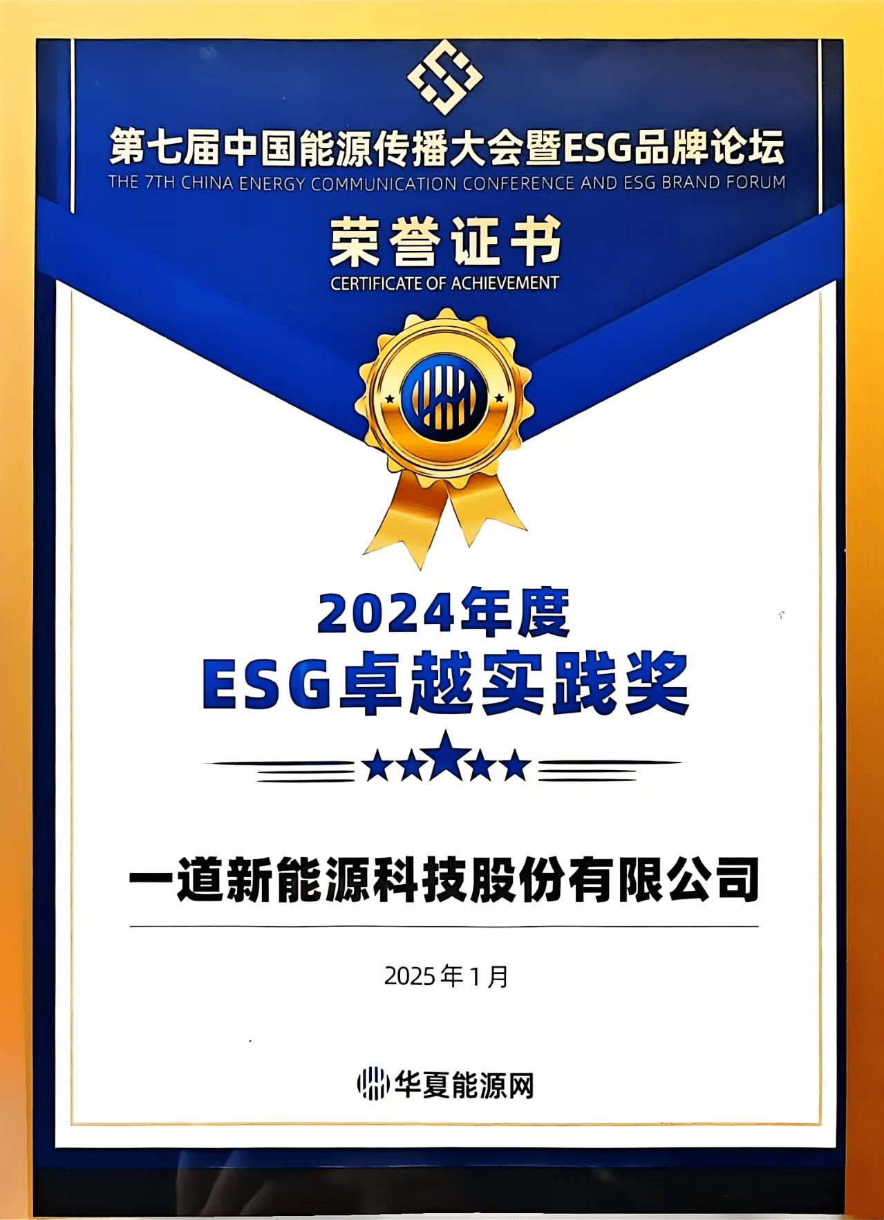 近日,由华夏能源网、华夏双碳能源研究院主办,第七届中国能源传播大会暨ESG品牌论坛在北京召开。本届大会以“传播绿色理念·传递社会责任”为主题,数百位能源行业同仁就能源品牌建设和ESG落地实践进行了深入的探讨和交流。凭借务实稳健的公司治理、积极广泛的社会责任担当以及环境友好的企业战略,一道新能获颁“2024年度ESG卓越实践”奖。