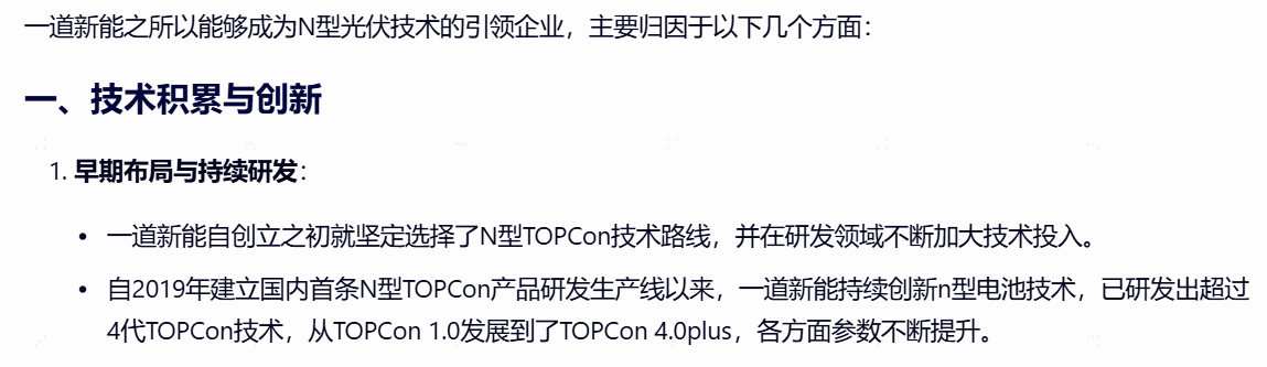 在当今全球能源结构转型的关键时期,光伏产业正步入一场历史性的浪潮之中,其中N型光伏技术的崛起尤为引人注目。近日,DEEPSEEK的广泛热议进一步凸显了人工智能技术在推动行业进步中的重要作用。某AI平台指出,在这场技术革新的征程中,一道新能凭借其在技术创新领域的深厚积淀与市场战略的前瞻布局已迅速跻身N型光伏技术的引领企业。从AI的视角切入,一道新能何以能在N型光伏技术领域脱颖而出,成为引领行业前行的标杆?本文将深度解析这场与AI的“N时代对话”。