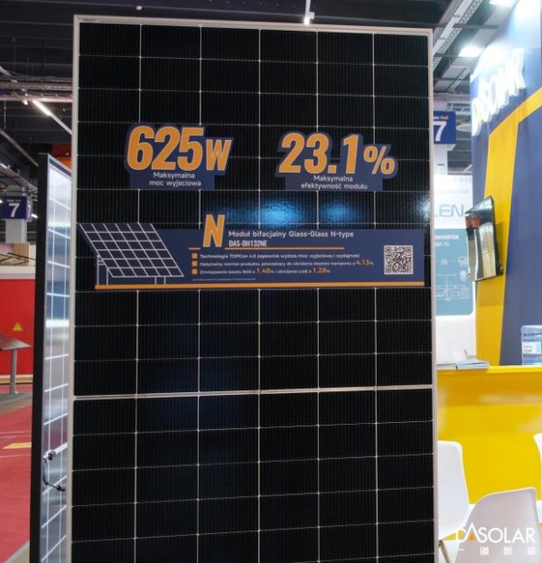 作为方形硅片的延伸,矩形硅片尺寸的统一促进了行业的健康发展。在本次展会现场,一道新能展示了采用矩形电池片的DAON系列66版型双面双玻组件,该款组件以最优的尺寸设计,在效率、功率、制造、工艺、运输等多方面突显了集约化优势。组件搭载了业内最先进的TOPCon 4.0 Plus电池技术,输出功率达625W,效率可达23.1%,兼具高效率、高功率、高双面率、低衰减、高可靠性等性能优势,能有效降低系统BOS成本和LCOE,保障长期、稳定、高效的发电收益。