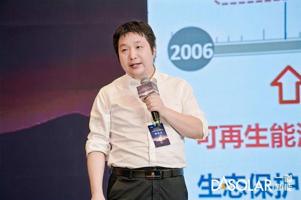 《荒漠区光伏电站规划与生态设计》 清华大学社会科学学院能源转型与社会发展研究中心常务副主任、中国治沙暨沙业学会光伏治沙专业委员会副主任委员何继江何继江介绍了宁夏光伏生态协同发展创新实证基地研究课题光伏治沙子课题的研究进展。