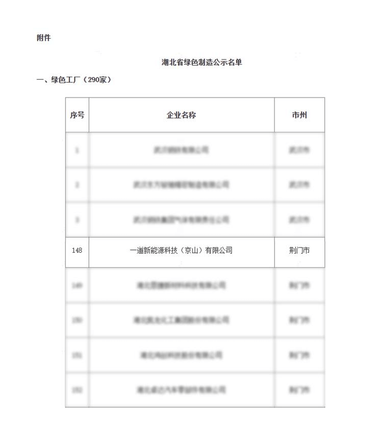 近日,湖北省经济和信息化厅正式公示2025年湖北省绿色制造名单,一道新能京山基地凭借在绿色制造体系建设及供应链可持续发展方面的卓越表现,荣获“绿色工厂”及“绿色供应链管理企业”两项殊荣。这是继衢州基地、泰州基地之后,一道新能第三次获得“绿色工厂”称号,也是公司持续推进制造业绿色低碳转型、构建绿色供应链体系的又一重要成果。