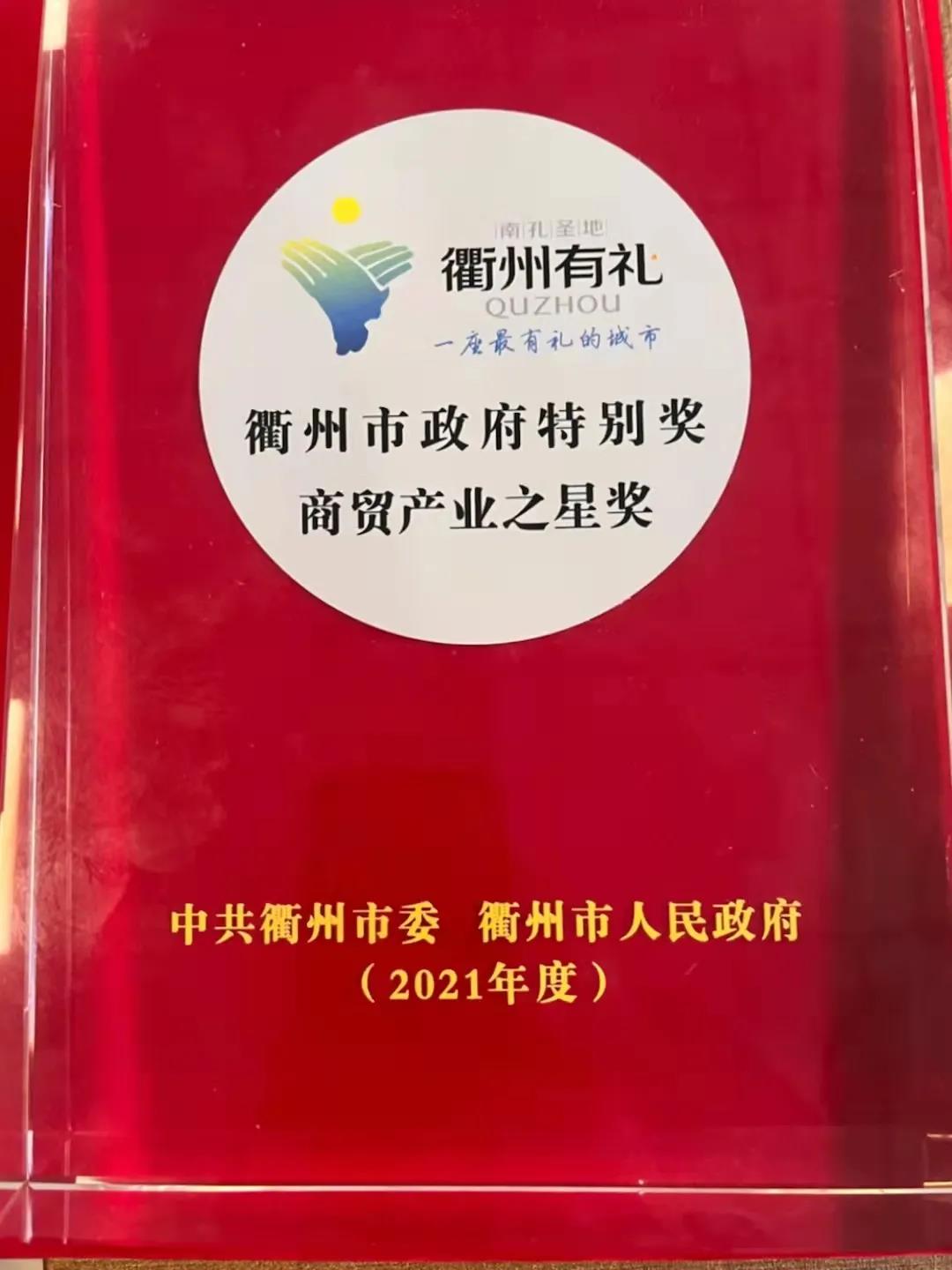 新年伊始,衢州市政府和衢江区政府分别召开了高规格的表彰大会,会上表彰了各类先进企业、单位和个人。一道新能分别荣获市政府特别奖--商贸产业之星奖,区政府特别奖--登高奖。