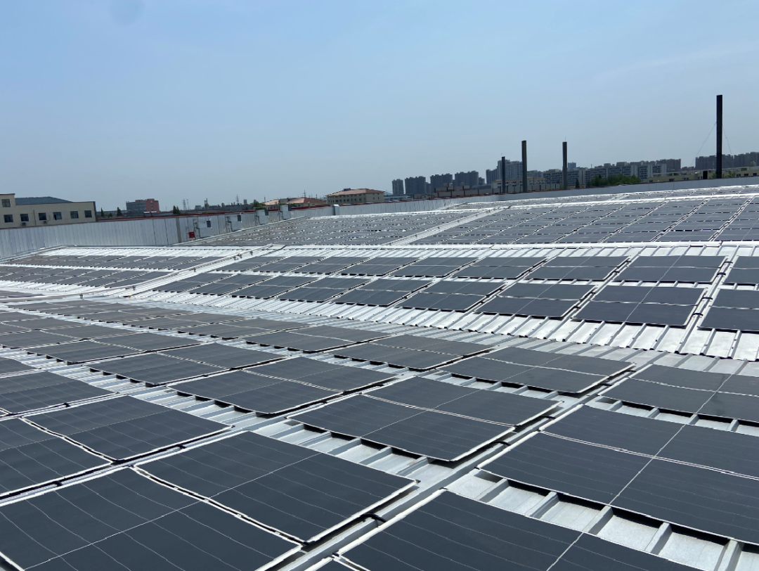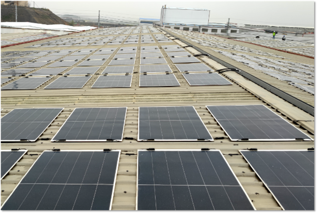 项目充分结合工厂建筑的特点,针对车间屋面T型彩钢瓦的特点,采用轻质组件。一道新能轻质组件4.3kg/㎡的组件重量,相较常规组件减重70%,顺利解决安装屋面承重力较低的问题,规避屋面塌陷、结构失效等建筑安全问题。
