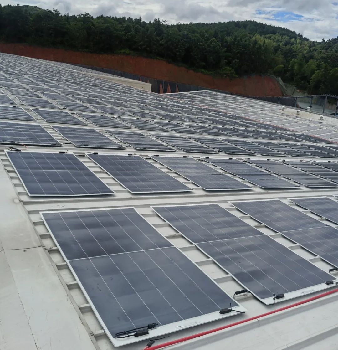 在山林如碧的花园式厂区,福建首个”轻质组件应用,多种综合能源结合“的1.2MW分布式光伏发电(一期)及绿色综合能源示范项目顺利落成。