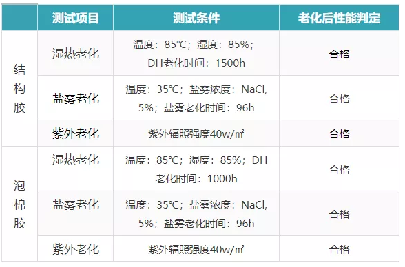 胶粘剂的粘接强度是评价胶粘剂质量的重要指标之一,一道新能轻质组件安装过程中使用的硅酮胶和泡棉胶力学性能和粘接能力指标,符合国标标准、团体标准T/CPIA 0008-2019标准要求,同时具有出色的耐久性和防腐蚀性。